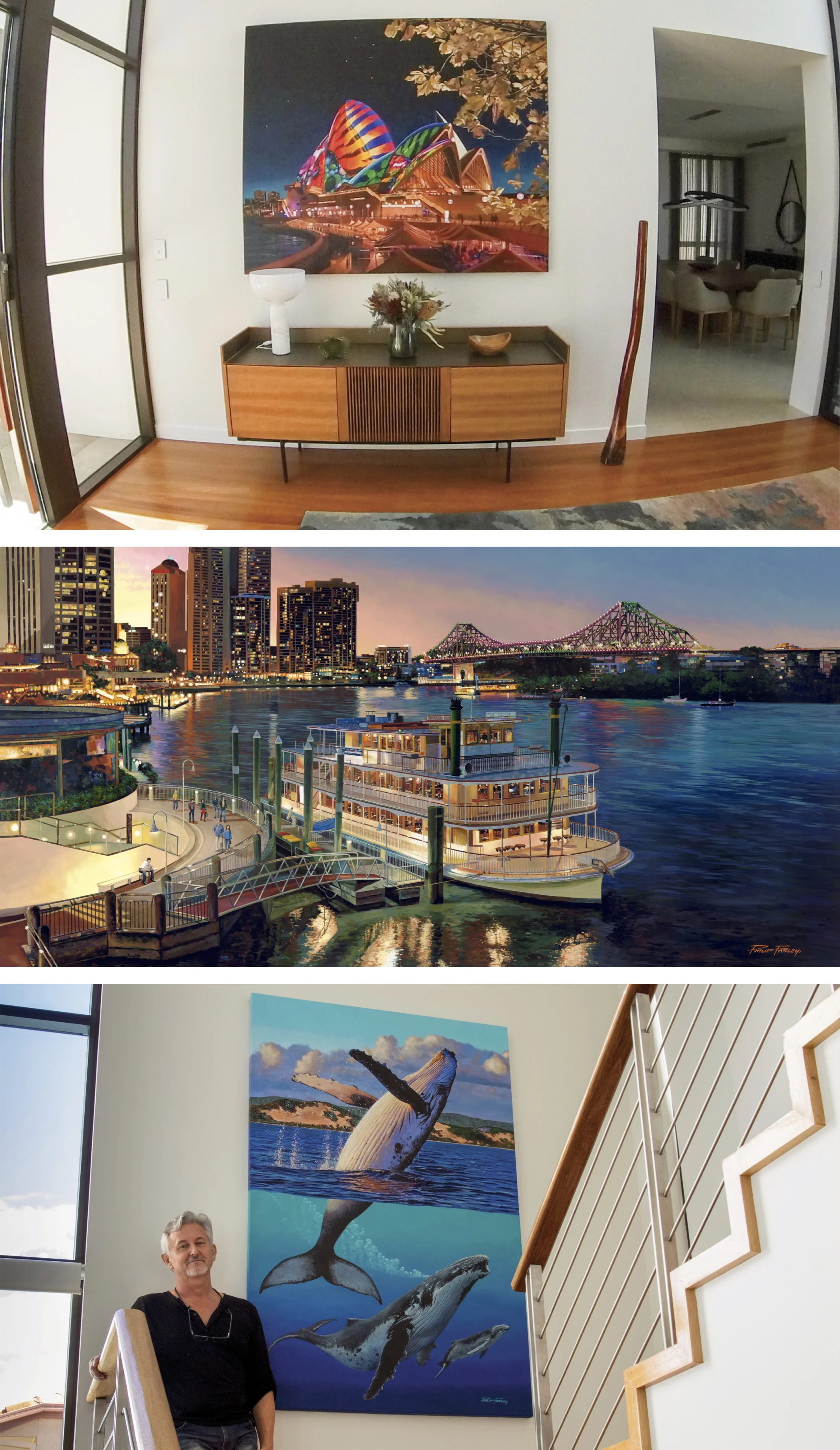 “My company commissioned Phil Farley to do three large paintings based on the theme “Brisbane City Scapes.” The three works are an amazing reflection of the Brisbane city skyline, Story Bridge and Brisbane River views. Visitors to our office continue to express very positive feedback on the paintings. We have even had comments from visitors saying they can’t believe the paintings aren’t actually photographs – that’s how detailed the artwork is. Phil is truly a master artist, and certainly top of his class in the Australian art scene.”